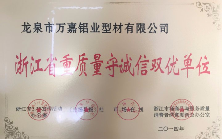浙江省重質(zhì)量守誠信雙優(yōu)單位