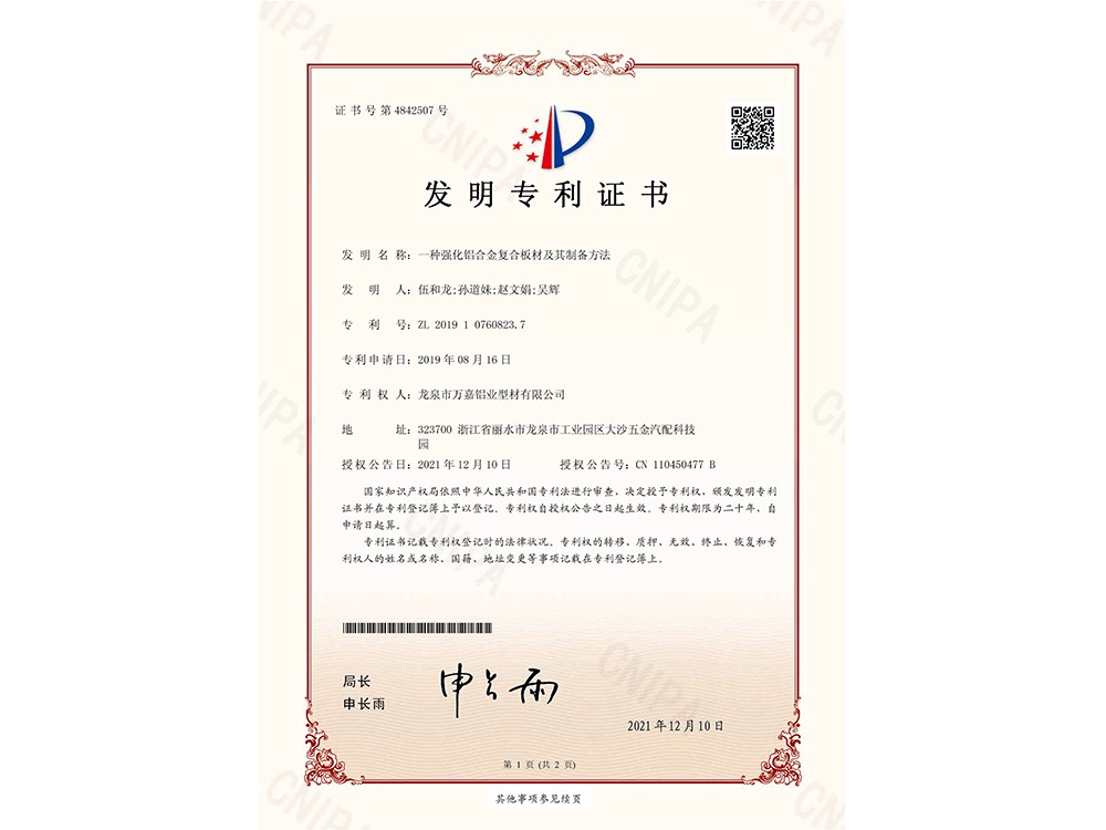 發(fā)明專利證書